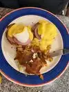 A diner atmosphere with booths and a counter. Seems to be busy every time we have visited. Had Western omelette for breakfast. Served with home fried potatoes and toast. A good choice. My wife had Eggs Benedict which she enjoyed. Coffee was good. Good service and friendly environment. Would recommend for breakfast or lunch.