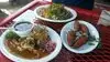 We had driven by this colorful place many times and always wondered about it, especially since it always seemed to be full of folks eating outside and inside. To me that is a sign of a place with good food. Anyway, after driving up and down the busy street of Glisen on a Monday when lots of places are closed, this place was open, even for a late lunch. Our timing was good thus no wait for a table. We had not planned to order so many items, but just had to try the taro root fritters which were very good especially with their own banana catchup. I ordered a side of avocados and got tons of them which made me very happy. My husband ordered the beet salad and got tons of beets, too. I got the fish which was ok & much better with their banana catchup. They were out of the best sounding dessert on the menu, so we opted for the cake they had which was ok. We took to-go boxes of the wonderful left over avocados and beets and ate on them for a couple of days. All of this colorful food and still our bill for two was not much at all. No wonder this is such a popular hot spot for so many locals, especially on weekends and after work.