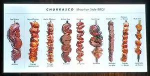 I ate there a week ago while in town visiting, and I can't stop thinking about how good it was. I do not like standing in line to order( and the line is long and slow) but the food IS REALLY GOOD. Brazilian with a selection of Beefs and Chicken dishes. The SPICY ckn. and Sirloin were great. The bacon wrapped ckn was dry so avoid. What takes so long is all the sides people are deciding on. Potato salad, baked squash, grilled squash, pasta salad, marinated beets,ckn stroganoff and the great Portuguese cheese bread balls. So much more too. It is by weight and isnt cheap but I will go back for sure next time I am there. Located in busy GROVE Farmers Market.