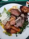We stopped here for lunch whilst visiting the farmers market. The queue was long, longer than anywhere else but it looked so good I had to try it. You get a plate and help yourself to salads and veg and then choose what meat you would like from the BBQ. You pay by the pound I think about $9 a pound. The salads are fresh and constantly replenished and the meat is to die for, you can have your beef, rare, medium, well cooked... how you like!! I can see why the queue was so long but I would do it again.. its sooo good...