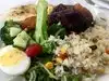 Joined the very long queue, assuming this was THE place to eat in the Farmers Market. Salad choices were along the lines of hardboiled eggs, chopped lettuce, beet root, cold broccoli, etc. A couple of bread items, then the BBQ meats. I had chicken and lamb. The chicken was raw in the middle- completely inedible, and the lamb was tough and fatty. Apparently you get to order how you like your meat cooked - though this wasnt offered as a choice to us. For over $30, it was really average and disappointing.