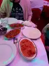 I saw this place a couple of years ago and the lights definetely got my attention so this time had to go! :) sicne there are 4 places in the same m2 a man in each of the places rushes you in so the one in this one got us in saying we will eat in 5min.. he got us to the back of the restaurant (extra tiny and crowded) and we waited standing by the restroom door and kitchen door for 15min at least, then we got our table and had a fantastic meal, the food is great and we got our bottle of wine! People are all havinga blast,a nd at elast 3 birthday parties happening with the singing, etc.. but the waiters kept "pushing" us to finish our meal, gave us free ice cream and brought our check even if we didnt ask for it and the man outside saying "we need the table get out" so that wasnt very nice.. we understand theres a line to come herebut still not a way to treat costumers.. we wanted to stay chatting awhile longer but impossible with the guy standing next to us pressuring us to leave.. but still i would come back for good indian food, nice price and fun place!