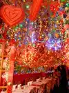 ...The restaurant claims to be the place "where Chili Pepper Lights meets Christmas-tree Lights". I thought it might be fun to celebrate a b-day party in such an original atmosphere, so we did a reservation for 15 with a fixed-priced menu. Shame on us, we didn't check the place in first place, because the place is SO tiny, we could barely fit and took us forever to arrange some tables together. Food wasn't quite enough; it was completely tasteless, and lacked spices at all. The dessert consisted in one single plate with three melting scoops, which the 15 of us were supossed to... "share"? Three people showed up at the end of the meal and probably tried a bit of something so they charged us for them too... If you decide to go there despite the reviews you read, I suggest you to go there in advance and stand in the street in front of the place, for a few minutes. Bring some popcorn. You may have some fun observing the staff from this restaurant and his competitor next to it (with an almost an identical decoration), fighting to get the other's clients in. Never ever again!!