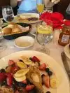 Rude, unprofessional service, the waiter rushed us to order as fast as possible in an unpleasant way. While we were eating, another waiter cleaned up the table next to ours, for a very long time, crowding me and making it difficult to continue eating. Then another guy poured the water on the table and on my leg, looked annoyed, did not apologize and walked away. We had a brunch: eggs, french toast, sausages and bacon and it wasn't great. The berries were tasty and fresh, but the french toast was dry and the sausages greasy. Coffee was bad. Price was fair. Would definitely not go back.