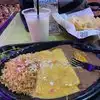 First the salsa and chips its complimentary with a meal great salsa fresh warm nachos. Super huge plate and great price I had beef enchilada. Sorry the meal didn't made it intact jeje