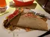 Breakfast quesadillas and a buttermilk pancake were served quickly, just what you want in an airport meal. Large portions on both.