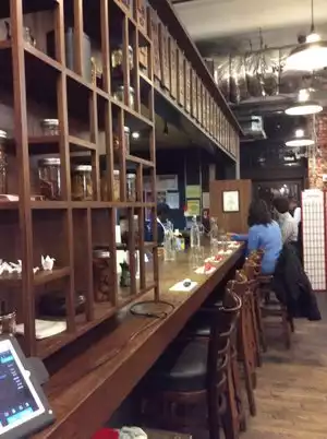 Bustling with activity, friends and neighbors crowd this popular spot to be served wonderful food and wide ranging choices of dishes and drinks. We will put this on our favorites list.