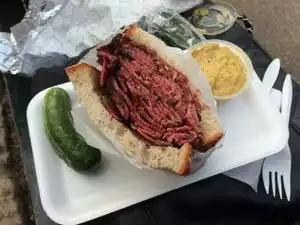 Great pastrami, some may say even better that Katz’s, definitely less crowded, nice and genuine staff, been there on our last day in NY right before heading to the airport. We felt really welcome.