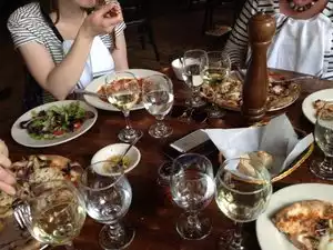 We were visiting this party of the city prior to a booking at a Comedy Club. We had not booked in advance but were able to get a table for 8 when we arrived at around 7.30 pm. Bread was provided on arrival and there was a small selection of wines. Pizza was tasty, and the food and wine were inexpensive. Service was friendly and food came promptly. There are limited restaurant options in this part of town compared to others, but if you're looking for an informal, inexpensive dinner in pleasant surroundings, this fits the bill.