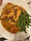 Had a reservation, walked past empty tables on the lower level and told to take the steps upstairs. A waiter sat us at a table, with no menus and no water. After about 10 minutes after several other waiters walked right by us without a word, finally one plops down two waters. After another 5 minutes a waiter drops off water and a bread basket, but no bread plates. Finally, a waiter drops off 2 menus which look like they were printed and laminated 40 years ago. We finally catch our waiters attention and he gets us bread plates and we order. No explanation of the menu and no specials. We order manicotti and chicken piccata, and he leaves without asking if we want appetizers or any sides. The food was just ok, not horrible but no better than Olive Garden. We flag down our waiter to get our check, which he brings without offering desert or questioning why we left half the food on our plates. I have no doubt that this was a great place 50 years ago, but it is no longer. I’d advise you to find someplace else.