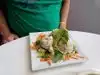 My friends who are kosher, picked the Peacefood Cafe since they could eat everything on the menu. Having never been there before I was s little adventurous and tried their "crab cakes", which were made without the crabs and while I knew that, I still anticipated that there might be some taste resembling the flavor associated with its name. My friends seemed happier with their choices: steamed dumplings with chives, a side order of Brussel sprouts, a salad and a sandwich! I tried the dumplings and they were surprisingly delicious. Next time, I'll know better.