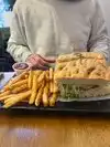 The “chicken” and waffles were great. I order a yummy sandwich. I really enjoyed the key lime pie as well. The staff was super friendly.