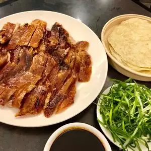We went for lunch on the first day of Chinese New Years. The restaurant is in a nondescript strip center, but inside it was clean and updated. It was also packed and energizing with the mix of Asian and non Asians enjoying the holiday. We ordered the duck dinner. It was $36 and could easily have served four people with a side order of spring rolls and a vegetable. It only came with the rice paper, shredded green onions, hoisin sauce and cabbage soup. The duck was quite moist and tasty. It was served sliced and boneless. The rice papers for wrapping, though, were not the best I have had. They were a little gummy. But still, I highly recommend it. But call ahead to reserve a duck!