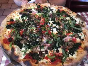 Excellent brick oven baked pizza. Had a Pizza with garlic, olives, breaded eggplant(delicious) and mushrooms. Great service and recommendations.
