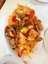 Very delicious! A hidden gem in the heart of downtown. I had spaghetti marina. My entree came with salad and bread!