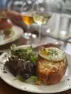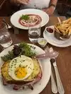 French fries and croque madame were delicious. Redtaurant was also very cute and service was good! Not too hard to get a res