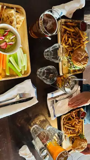 Stopped in for an early dinner with family.... Good beer selection, menu was interesting selections and had a taste for everyone. Burgers were fresh and tasty, salmon burger was also very good as well as veggie burger. Salads looked great as well as starters. Low key atmosphere, service was okay not too friendly but we ignored her coolness! Maybe just having a bad day!
