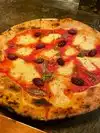Amazing quality pizza â I got it twice on a recent visit to NYC. Be sure to watch when they make it for you â it is like a TV show. The guy pours some liquid batter on a wooden ladle, spreads on it cherry tomatoes cut in half (not a sauce), throws in generous helpings of buffalo mozzarella and puts the ladle into an open wood-burning stove. He then moves a burning log near your pizza â and in two minutes you receive the freshest, tastiest, and absolutely addictive small pizza pie. Unforgettable!