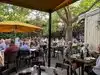 Traveling to a conference with two colleagues and we happened upon this restaurant. The food was delicious the halibut was very good. The wine list was extensive and the service was spot on. The best thing about the experience was dining outside under a big tree in the city! After a long day of airport travel - sipping wine, eating and relaxing outside was a great way to finish off the evening.