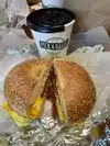 Amazing breakfast bagel with Egg, Cheese and bacon. Definitely a place I would go for breakfast again. I like The atmosphere of how fast, that they Can make it.
