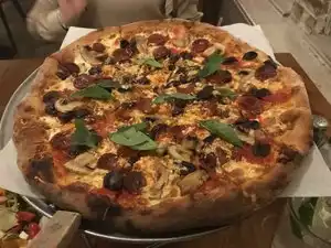 Good Pizza, just ok service, very large, loud high volume place but somehow still quaint. Didn't seem to me that they (or maybe just the server) was used to dealing with dinners with nut allergies which made it a little unnerving while eating due to nut cross contamination concerns.