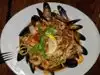 We had our dinner here before leaving this great city. Got here at their peak hour, but got seated right away. We ordered a pizza and Linguini fra Diavolo Frutti di Mare. The pasta dish alone deserved a full 5 star for it was so good and loaded with so much seafood. No joke: I spent most of my time trying to eat up the gorgeous seafood and didn't have enough room to finish the pasta. The dish wasn't spicy, but the taste was very close to the Frutti de Mare we had in Cinque Terres in Italy. Very authentic. The meatballs and pepperoni pizza was great too. The crust was very good. Their prices were very reasonable as well. The service was adequate. Highly recommended.