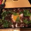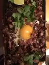 The food at this restaurant is so fabulous I am willing to overlook that it is not a place to comfortably have a conversation. Trying to make a last minute Saturday night restaurant we had to accept a very early evening time in order to be seated and the place was already close to full when we arrived. All this was worthwhile as we started with the sizzling The food is so delicious that, despite the fact that a Saturday night reservation was difficult to get and the noise level made it difficult to get back, I will definitely be back. We started with the Sizzling Sisig, crisp and moist, deliciously seasoned and salted morsels of sizzling pork topped by a raw egg that you quickly mix in on the truly sizzling serving pan so it is no longer raw as you dig. We had the coconut rice as the accompaniment for this and our main course platter of perfectly cooked duck; a generous portion of both breast and leg meat. Plenty of food for 2. On subsequent visits I will have the difficult decision of whether to repeat this memorable meal or keep going down the short menu till I've tried everything. Note: For my next visit I will try going during the week to see if this small restaurant is a little less crowded and noisy outside of prime time. I should also note, if you want your food served more slowly, order one dish at a time. The waitress was friendly and helpful in describing and recommending dishes from this unusual menu.