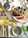 My daughter, an LA resident was very anxious to take us here. She has got the know the owner. So, conflict of interest declared. But this was lovely. We had lunch in the shaded garden, quiet even though every table was taken. We shared dishes. I strongly recommend this the warm olives. The humus and crispy breads where spectacular, and a truly flavoursome mushroom frittata. We will definitely return. This was definitely a lunch menu - light dishes perfectly suited to the climate. I look forward to returning to sample their dinner menu.