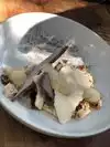 I really wanted to like the food at PFW but it didn’t deliver. Nice outdoor patio and dining room. The waiter was ok but made some mistakes along the way that leave you wondering. He helped us decant a wine, and then he proceeded to pour another open bottle of wine on top of the decanted wine in the glass. I guess he was distracted but he was very apologetic as he ruined a $$$ glass of wine Raw lasagne 7/10 nut cheese ricotta was not very tasty. Mushrooms 7/10 polenta not good Cavatelli 9/10 decent sauce and well prepared Nut cheeses as app were enjoyable but the chèvre was tasteless 7/10 Brussel sprouts 7/10 I expected more. We were two couples and had a great time in the rustic setting outside despite the less then interesting food. Will be back to try this innovative spot again.