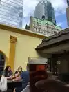 came here on the way home and managed to get a street view table, watching the world go by and there seemed a few bars/restaurants in the vicinity had a reasonable price pint of blue moon on the other side Whilst facing the street on the right hand side,there was a lovely lit building at night yeah it was nice and open and no roof so good whilst the weathers warm and dry, not sure what it be like otherwise