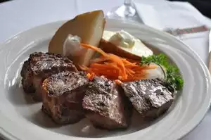 Have a New York strip. Very good done exactly as I asked. Accompanied by mashed potatoes and steamed vegetables. Price was typical for New York, maybe a little less. Service was fabulous. Highly recommend. Very close to many good theaters