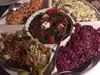 We had the Eggplant salad or app. The Borch the best I've ever had! Cheese pie, puff pastry wonderful Lamb chops with Pomegranate glaze And the layered Honey cake w/ ice cream. I am a retired executive chef I know food, lived in new York and Paris. We took alot home , wanted to try everything. Service slightly off rhythm, just ok. You come for the food and it was fabulous!