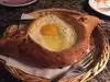 The waiters were friendly and helpful but did not hover, which I consider a plus. The walls are covered in graffiti from customers, and you won't feel out of place in casual clothes, but it can still feel like a special occasion restaurant. Rather than order entrees our table of three got a variety of small plates and shared, giving us a bit of the feel of a Georgian feast. Georgia is famous for Khachpuri: a cheese and bread dish. The Adjaruli version (with an egg mixed into the melted cheese tableside) was definitely the star of our dinner.