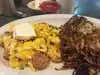 My husband enjoyed the "birds in a tasty nest" breakfast that comes as a large portion of food. I had the delicious chicken sausage breakfast with nicely crunchy hash browns. Service was excellent; they kept the good coffee coming! Oddly enough, we were disappointed that they were out of toast and substituted a biscuit which was not special at all. We also appreciated that they had a selection of four hot sauces. Finally, the bathroom: Sorry, I've seen gas stations with cleaner facilities. They need to clean it daily and supply soap. Really unfortunate, given the quality of everything else.