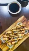 Checked out this place on a recent trip. Packed and buzzing with guests. Ordered the Rockshrimp Tempura with buffalo sauce and the Crispy Salmon roll. Both were good choices.