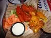 Nice sports bar. Plenty of tv's. I had the wings entree. Half Bourbon BBQ and half Garlic Parmesan. Both were excellent. Big meaty wings with carrot and celery sticks, Blue Cheese. Had a Bud to drink. Couldn't eat all so I got to take some to my room!