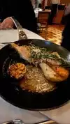 Perfect for dinner with friends, clients or fancy relatives! They have a lovely small bar where you can mingle before heading to the table. We were not in a hurry and were allowed to hang out and savor the food and each other’s company without feeling rushed. The 4 of us ordered on the high side (and took home some amazing leftovers) including the corn creme brûlée- DONT MISS THIS! along with a dozen perfect oysters, a small dish of mushrooms (not my favorite of our choices) the Moroccan Fried Chicken (served in a tagine with 3 delicious sauces) and the Pork Shank with sausages and small potatoes and terrific French fries (don’t miss the aioli mayo). Everything was incredible! We enjoyed their house red which was extremely drinkable and reasonably priced. Service was impeccable- including bringing us fingerbowls of hot water and lemon to clean up after the fried chicken dipped in the honey chili sauce. It isn’t a budget meal (especially due to our ordering!) but it’s not crazy and WELL worth it! Ambiance both inside and outside are both elegant, romantic and top notch. Highly recommend.