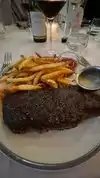 I was invited for dinner by one of my sons. Everything was like expected starting with the meat which was perfect. You boast being a Frebch restaurant but there I have my doubts. You're playing around with French words but it isn't reflected in some of your dishes. Your selection of sauces is rather limited (your peppercorn sauce has nothing to do with a "sauce au poivre"and was very disappointing and I wish I hadn't ordered it.) I would have expected a roquefort sauce with my leat but there wasn't any. And the side of watercress could have been improved with some vinaigrette). Now the deserts, one of my sons ordered a chocolate mousse (the French "mousse" means foam , but what he got looked like concrete and belonged to the building industry not a restaurant like yours). As to my desert, the floating island was delicious but not a floating island the French way. I don't know what the island was made of but it was not meringue. This being said, overall the five of us enjoyed our meals, but please, be honest and don't call your restaurant French and stop playing around with French words that don't make any sense and border ridicule.