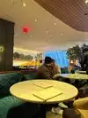 The restaurant is surrounded within a beautiful environment of the fantastic cooper sculpture and the amazing mall. The host & hostess seem to have a confusion of the menu choices - they should be describing the menus as our Michelin rated dinner menu and simply our bar menu with a light fare . The host made it much more complicated And gave the impression we could sit on the fancy restaurant side and still order a burger , but that was not the case. However , we ate on the fancy side and than ate on the bar side . Alvin was our waiter who was excellent and was very polite. His service was excellent , but it was evident that he was loosing table because the host was not making himself clear about what menu was appropriate for each side . The host would sit folks down and than they would leave to go to the bar side . I would recommend you open up the entire restaurant to hamburgers as well - the restaurant would be packed all the time . Alvin was a triple AAA waiter and offered some great suggestions as far as food choices . We had a very good meal , I was disappointed in the hazelnut sponge cake dessert - it is a unique concept but The cake was dry and the center ice cream or pudding was tasty , but would have been delicious melted down and drizzled on the sponge cake with the cookie crumbs on top All & all the restaurant is very cool and is an excellent location , however I would recommend some slight changes to the menu - it’s either the Michelin menu or the bar menu and the restaurant side should take reservations if they are trying to keep the restaurant more exclusive Take some advice loving advice Make all of your staff go Out of there way to be really nice - place the pretenses aside . You get more with honey than you do with spice Seafood parfait was excellent Tuna appetizer delicious Watermelon Burrata was perfectly light ! We had the Burgers on the bar side - excellent - juicy and very tasty I would also suggest a truffle French fry ! Feel free to contact me to review your restraint again to see if there are any improvements