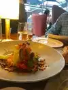 This is a sister restaurant to Bluebird NYC and London. Menu is a little different. We ate in the more casual side for lunch. Fish and chips were ok. Outside was not crisp enough too doughy. Portion was good. Shrimp salad was good but took some work to eat. Hopefully a little more time in business and things will improve.