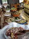 Huge buffet with delicious choices. They have a semi separate room where you can carry a conversation but this room is closed during the warm season. You can sit outside or on the main room but when they have a band music is too loud and it is impossible to have a conversation with your friends/family. Not suitable for children.