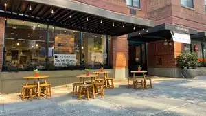 You could eat outside or in a very cool (temperature) restaurant. We chose outside and if you aren’t used to the weather, I baked. Food and service was exceptional. Just about everything we tried off Starter menu was fabulous. Must try the pork belly bun! The gochujang cream noodles was fabulous which we will try to create at home.