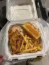 Generous and delicious food 1 portion of 6 pieces of chicken and fries serves 2 people easily! Very crowded place with DJ playing