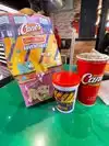 Global headquarters of RC in Times Square. Wonder if this is true? So chaotic at 5:30 PM. Lines started outside the door. Can’t tell if people are lined up for counter service or the ordering kiosks or if they ordered already. We mobile ordered and spent more than 40 mins in the designated area indoors only to find out our food was brought to the outside window. Food was cold by the time we found out. They should have staff to direct people or have stanchions and ropes plus better signage. This is our 2nd visit to this location and I was happy to see staff who was actually wiping down tables and picking up trash from the floor.