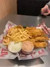 We went in here because my partner has always wanted to try it with not having the chain at home. The service was super fast which is great and staff very friendly! We had some chicken tenders/strips and chips. The chicken was delicious but I was shocked at how salty the fries were. Maybe cut down on the salt or give the option to let the customers salt their own food? But I did enjoy it so thank you!