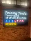 Raising canes is a very good fast food. I ate the chicken with fries and a piece of bread. It was very good, the local was very beautiful because is located in Times Square. The prices aren’t very expensive.