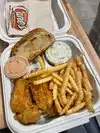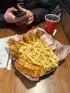 Definitely not worth the hype, my family and I ate here towards the end of December, we absolutely will not return. We did not expect the best fast food in America but definitely something good. Chicken and chips completely soft and wet, the famous sauce tasted only of pepper, salad not even to be considered.... the only thing actually good was the bread. The classic place not suitable for the weak stomach, after a few hours we were all sick... On the other hand, the service was fast, but the game is not worth the candle.