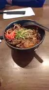 I'm kinda baffled to read many good reviews here, maybe I was unlucky... anyway, here's my experience: NYC, very hot day; still I want ramen. There's a sign outside this place that I had already noticed; it says "cold ramen"... that's perfect, I think, and the B grade from the sanitary inspection doesn't stop me. I will regret that 10 minutes later. I order cold ramen, which I'll find out that's not cold at all. The noodles (box/can quality) are hot, the broth is hot too, and the flavour is merely bad. It tastes more chinese than rameny... low quality chinese. I think to be able to recognize good ramen, and this wasn't. As a conclusion, that night I spent about 20 minutes extra in the bathroom... but that's a story I don't wanna tell.