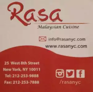 I have tried several orher Malaysian joints, in Union Square and Little Italy, they both were great but Rasa was awesome! The servers were quick, kind and helpful, The place is spotless, location is great and great selections as well. Went back three time after I discoveref the joint! Coole blocka from the blue A, C and E lines (West 4th) and short walk from Red 1 and 2 line (Christopher st). Check em out! A MUST, roti canai with Malaysian curry dipping