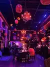 The wait time for this bar without a reservation was about 2-3hrs. We got lucky that they allowed us to sit at the bar since it was just the two of us. We only waited 30 minutes. We didn’t try any of the food because we went for the drinks and ambiance. The drinks were really good and inexpensive. The bartenders and servers were really friendly. The decor, music and people in their costumes gave us all the Halloween feels. I would definitely go back!